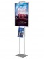 Składany stabilny, wolno stojący prezenter, który umożliwia jednoczesną ekspozycję plakatu wraz z ulotkami. Stojak składa się z składanego wolno stojącego statywu, do której przymocowana jest ramka aluminiowa w wymiarze B2 ( możliwy inny wymiar) i kieszeń A4 pionowo na ulotki A4 pionowo.