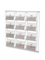 Modułowy zestaw 12 kieszeni na ulotki z możliwością podziału kieszeni na mniejsze przegródki.