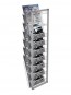 Kaskadowy zestaw siedmiu kieszeni A4, wykonany z kieszonek plexi i stelaża z anodowanego aluminium. Do powieszenia na ścianie.