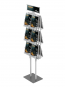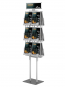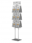 Stabilny, wolnostojący, prezenter na ulotki, foldery w wersji dwustronnej.Dwanaście ulotek A4 (możliwe inne formaty ) widocznych w 100%. Rama z anodowanego aluminium, kieszonki z plexi. Piozioma tabliczka nad ulotkami do umieszczenia logo lub innej informacji. Stojak posiada możliwość zamontowania w nim na stałe po jednym egzemplarzu ulotki. Takie ulotki (przytrzymane sztywną folią) ułatwią klientom orientację, a obsłudze uzupełnianie ulotek.