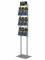 Stabilny, składany prezenter na ulotki, foldery. Stojak posiada składany statyw z anodowanego aluminium oraz trzy kieszonki z plexi, formatu A4 w poziomie, z możliwością podziału na ulotki A5 i Dl. Możliwość złożenia sprawia, iż jest idealny do transportu.