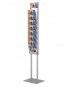 Stabilny składany , wolnostojący, prezenter na ulotki, foldery. Siedem ułożonych kaskadowo kieszeni na ulotki A4 (możliwe inne formaty ) widoczne w 50%. Rama z anodowanego aluminium, kieszonki z plexi. Jednostronny (możliwa wersja dwustronna - ulotki i logo powtórzone z drugiej strony). Piozioma tabliczka A5 nad ulotkami do umieszczenia logo lub innej informacji na kartce formatu A5.
