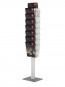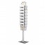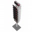 Stabilny składany, dwustronny, wolnostojący, prezenter na ulotki, foldery. Czternaście ułożonych kaskadowo kieszeni na ulotki A4 (możliwe inne formaty ) widoczne w 30%. Rama z anodowanego aluminium, kieszonki z plexi. . Pioziome tabliczki A5 nad ulotkami do umieszczenia logo lub innej informacji na kartce formatu A5. Możliwość złożenia sprawia, iż jest idealny do transportu.