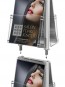 Stabilny, wolnostojący, prezenter na ulotki, foldery w wersji dwustronnej. Osiem ulotek A4 (możliwe inne formaty ) widocznych w 100%. Rama z anodowanego aluminium, kieszonki z plexi. Piozioma tabliczka DL nad ulotkami do umieszczenia logo lub innej informacji na kartce formatu DL. Stojak posiada możliwość zamontowania w nim na stałe po jednym egzemplarzu ulotki. Takie ulotki (przytrzymane sztywną folią) ułatwią klientom orientację, a obsłudze uzupełnianie ulotek.