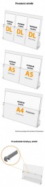 Stojak na ulotki A4 A5 DL, 4 kieszenie A4 poziomo Art 270