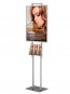 Stabilny, wolnostojący prezenter który umożliwia jednoczesną ekspozycję plakatu wraz z ulotkami. Stojak składa się z wolnostojacej nogi do której przymocowane są, ramka aluminiowa w wymiarze B2 ( możliwy inny wymiar) oraz kieszonka z plexi formatu DL (możliwe inne formaty).