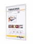 Prostokątna płytka z plexi wykonana metodą wtrysku. Z jednej strony posiada zagłębienie co pozwala na umieszczenie w niej kartki z napisem oraz folii zabezpieczającej. Małe zaczepy wokół obwodu przytrzymują kartkę i folię. Brzeg płytki jest pogrubiony, a jego specjalny kształt pozwala na połączenie tabliczki spinkami z innymi elementami systemu. Sposób mocowania dostosowany do indywidualnych potrzeb, do wyboru w tabelce.
