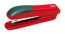 Mały zszywacz biurowy wyposażony w plastikowe ramię oraz podstawę o